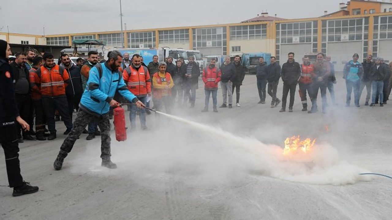 Kayseri Büyükşehir Belediyesi İtfaiye Daire Başkanlığı personeli tarafından saha çalışanlarına yönelik yangın tatbikatı ve eğitimi gerçekleştirildi. Kocasinan Belediyesi’nin Oruçreis Mahallesi’nde bulunan teknik atölyesinde uygulamalı olarak gerçekleştirilen eğitimde; yangının çıkış sebepleri, sınıflandırılması, yangın söndürmede kullanılan maddeler, acil durumlarda alarm ve tahliye planlaması gibi konular hakkında katılımcılara bilgiler verildi.