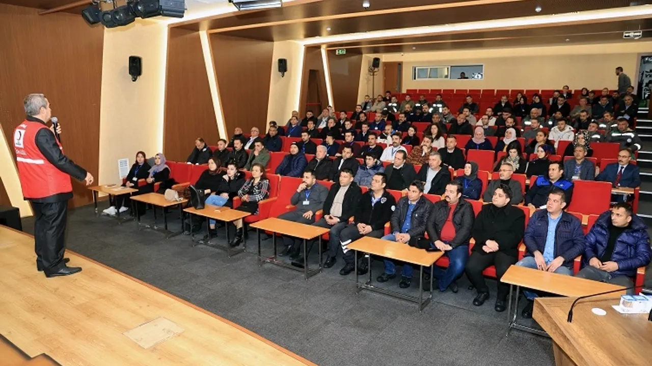 KAYSERİ (İGFA) - Kızılay Talas Şubesi işbirliğiyle Kayseri Talas Belediyesi Meclis Salonunda gerçekleştirilen eğitime, birim müdürleri, belediye hizmet binasında çalışanlar ile sahada görevli personel katıldı.