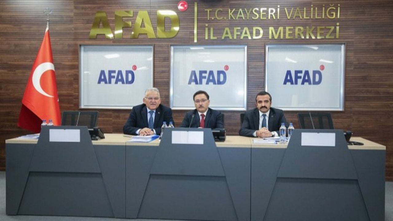 Kayseri Valiliği İl Afet ve Acil Durum Müdürlüğü’ndeki İl AFAD Merkezi’nde gerçekleşen toplantıya, Kayseri Valisi Gökmen Çiçek, Büyükşehir Belediye Başkanı Dr. Memduh Büyükkılıç, Vali Yardımcısı Ömer Tekeş, AFAD Kayseri İl Müdürü Osman Atsız, Kayseri Büyükşehir Belediyesi Afet İşleri Daire Başkanı Gonca Arın, İtfaiye Daire Başkanı Mustafa Metin Kızılkan, Kayseri İl Jandarma Komutanı Tuğgeneral Hakan Dedebağı, İl Emniyet Müdürü Kamil Karabörk, İl Sağlık Müdürü Dr. Mehmet Erşan, İl Milli Eğitim Müdürü Bahameddin Karaköse, Çevre, Şehircilik ve İklim Değişikliği İl Müdürü Sibel Livdumlu, Gençlik ve Spor İl Müdürü Ali İhsan Kabakcı, Kayseri İl Tarım ve Orman Müdürü Bülent Saklav ile kaymakamlar, bölge müdürleri ve bürokratlar katıldı.