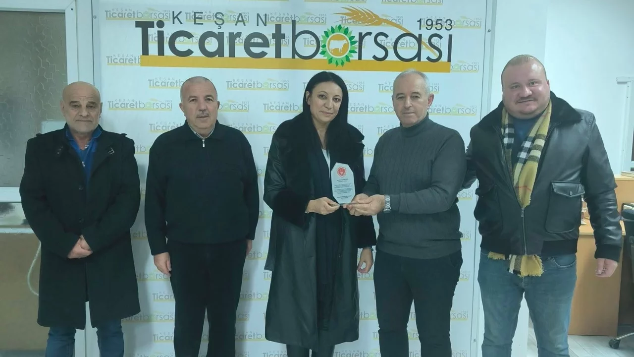 Edirne'de Keşan Anafartalar Spor Kulübü Başkanı Olgu Karataşoğlu ve yönetim ekibi, Keşan Ticaret Borsası’nı ziyaret etti.Erdoğan DEMİR / EDİRNE (İGFA) - Edirne'de Keşan Anafartalar Spor Kulübü, Keşan Ticaret Borsası’nı ziyaret etti.