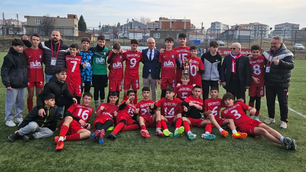Keşan Genç Ordu U14 Takımı, Uzunköprü Ergene Stadı'nda oynanan final maçında önceki gün Şükrü Paşa Spor U14 Takımı'nı 4-2 mağlup ederek Edirne U14 Ligi’ni şampiyon tamamladı.Erdoğan DEMİR / EDİRNE (İGFA) - Keşan Genç Ordu U14 Takımı, önceki gün saat 14:00'te Uzunköprü Ergene Stadı Oğuz Arda Sel Futbol Sahası'nda oynanan final maçında Şükrü Paşa Spor U14 Takımı ile karşılaştı. Rakibini 4-2 mağlup eden Keşan Genç Ordu, Edirne U14 Ligi’ni şampiyonlukla tamamladı.