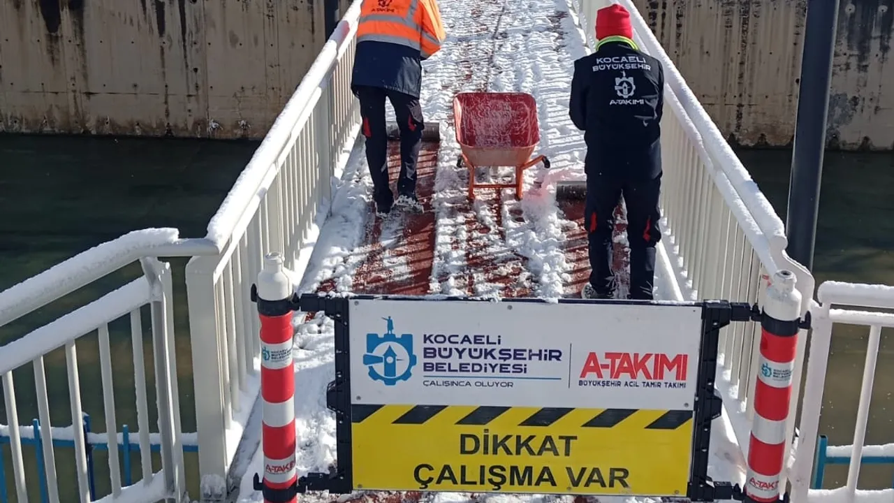 Kocaeli Büyükşehir Belediyesi, kar yağışının ardından araçların ve yayaların sorun yaşamaması için şehir merkezleri ve kırsal mahallelerde buzlanmaya karşı gerekli önlemleri aldı. Kaldırımları kar ve buzdan temizleyerek yayalar için güvenli hale getiren ekipler söz konusu çalışmaları özellikle vatandaşların yoğun olarak kullandığı bölgelerde gerçekleştiriyor. Büyükşehir ekipleri, kaldırımların dışında yaya üst geçitlerinde de kar temizleme çalışması yaparak yaya ulaşımının en önemli noktalarında güvenli geçişi sağlamak için çaba sarf ediyor.