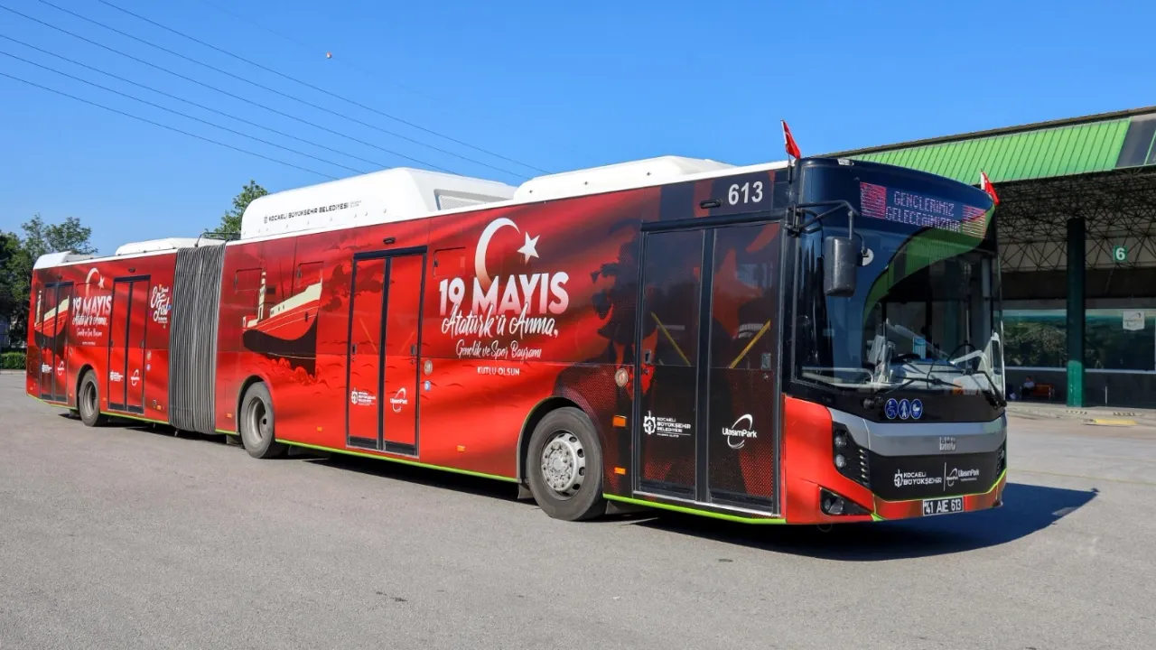 Kocaeli Büyükşehir Belediyesi’nin ulaşım araçları, 19 Mayıs Atatürk’ü Anma, Gençlik ve Spor Bayramı coşkusuna özel olarak giydirildi.KOCAELİ (İGFA) - Kocaeli’nde 19 Mayıs Atatürk’ü Anma, Gençlik ve Spor Bayramı, Büyükşehir Belediyesi’nin düzenlediği etkinliklerle coşku, gurur ve heyecanla kutlanıyor.