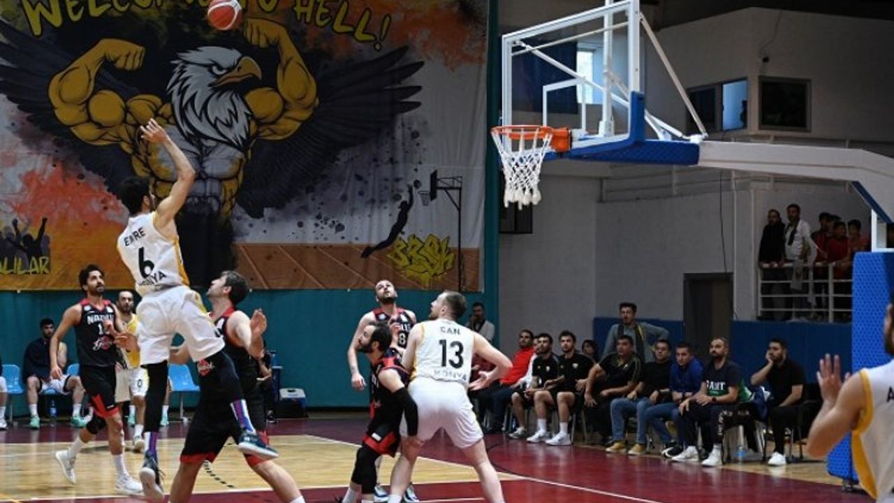 Serinin son maçında ise taraflar Konya’da karşılaştı. Konya Teknik Üniversitesi Spor Salonu’nda oynan ve büyük heyecana sahne olan serinin üçüncü ve son maçı nefesleri kesti. Tribünlerin tamamının dolduğu salonda uzatmaya giden mücadelede taraftar desteğini de arkasına alan sarı-siyahlılar, maçı 69-63; seriyi de 2-1 kazanarak finale çıkmaya ve Türkiye Basketbol Ligi’ne yükselmeye hak kazandı.