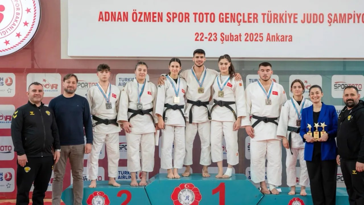 Konya Büyükşehir Belediyesi Judo Takımı, Ankara’da düzenlenen Gençler Türkiye Judo Şampiyonası’nda önemli bir başarıya imza attı. 52 ilden 700’ün üstünde sporcunun katıldığı turnuvada 17 sporcuyla mücadele eden Büyükşehir’in sporcuları; 3 altın, 2 gümüş ve 2 bronz olmak üzere toplam 7 madalya kazandı.KONYA (İGFA) - Gençler Türkiye Judo Şampiyonası 22-23 Şubat tarihlerinde Ankara’da düzenlendi.