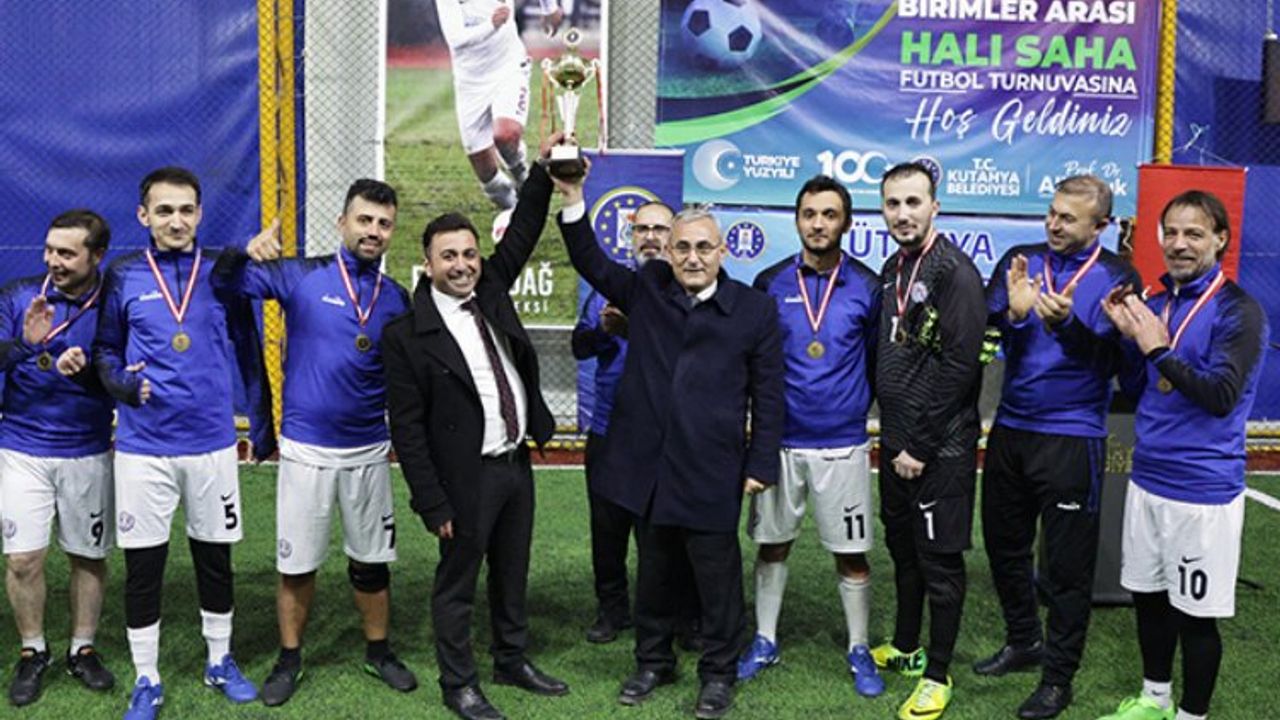 Kütahya Belediyesi'nin kurum içi iletişimi güçlendirmek adına organize ettiği Birimler Arası Halı Saha Futbol Turnuvası’nın şampiyonu, Zabıta'yı finalde 6-2 mağlup eden Özel Kalem Müdürlüğü oldu.KÜTAHYA (İGFA) - Kütahya Belediyesi'nin personelin motivasyonunu artırmak ve kurum içi iletişimi güçlendirmek adına organize ettiği Birimler Arası Halı Saha Futbol Turnuvası’nda final heyecanı yaşandı.
