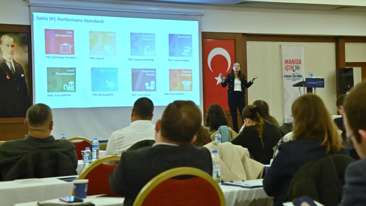 Manisa Büyükşehir Belediyesi, Dünya Bankası Grubu’na bağlı Uluslararası Finans Kuruluşu (IFC) işbirliğinde “Çevresel ve Sosyal Kapasite Geliştirme Desteği” konulu eğitim semineri gerçekleştirdi. Anemon Otel Konferans Salonu’nda düzenlenen ve iki gün süren eğitimde, proje süreçlerinde çevresel ve sosyal risklerin yönetimi ve etki değerlendirmesi ile bu süreçlerin yerel yönetimlerle ilişkisi detaylı bir şekilde ele alındı.MANİSA (İGFA) - Manisa Büyükşehir Belediyesi ile Dünya Bankası gurubu kurumları arasında yer alan Uluslararası Finans Kuruluşu, gelecekte işbirliği yapılacak projelerde daha uyumlu ortak çalışma süreci gerçekleştirilmesi için eğitim semineri düzenledi. İnsan Kaynakları ve Eğitim Daire Başkanlığı tarafından organize edilen seminere, Manisa Büyükşehir Belediyesi Genel Sekreteri Burak Deste, Genel Sekreter Yardımcısı Pınar Mine Hacıalibeyoğlu, Teftiş Kurulu Başkanı Hüseyin Çağatay, daire başkanları, birim müdürleri ve ilgili personel katıldı.