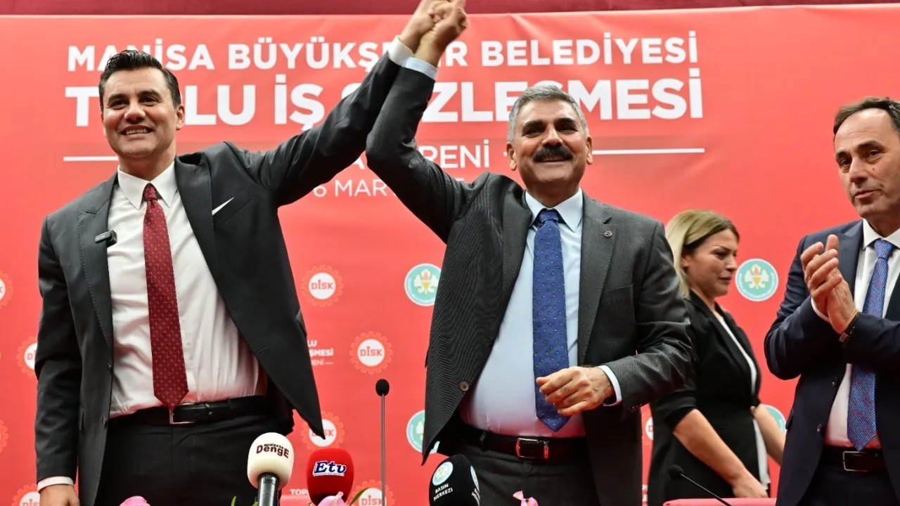 Manisa Büyükşehir Belediyesi iştiraki BESOT AŞ. ile DİSK/Genel-İş Sendikası arasında, 5 binin üzerinde çalışanı ilgilendiren toplu iş sözleşmesi imzalandı. Büyükşehir Belediye Başkanı Mimar Ferdi Zeyrek, 31 Mart’ta bir isim değil, yönetim anlayışını değiştirdiklerini ifade ederek “Bu sözleşme, alın terinizin, emeğinizin ve dayanışmamızın bir nişanesidir” dedi.MANİSA (İGFA) - Manisa Büyükşehir Belediyesi bünyesinde çalışan 5 bini aşkın işçiyi kapsayan toplu iş sözleşmesi imzalandı. Manisa Büyükşehir Belediye Başkanı Mimar Ferdi Zeyrek ile DİSK/Genel-İş Sendikası Genel Başkanı Remzi Çalışkan’ın imza altına aldığı toplu iş sözleşmesi ile en düşük günlük yevmiye, bin 80 liraya çıkarıldı. Ayrıca, toplu iş sözleşmesinde ‘Ayrımcılığın Önlenmesi ve Toplumsal Cinsiyet Eşitliği’ maddesi de ilk kez yer aldı. Toplu iş sözleşmesi imza törenine, Manisa Büyükşehir Belediye Başkanı Ferdi Zeyrek, Genel Sekreter Burak Deste, MASKİ Genel Müdürü Talat Postacı, Genel Sekreter Yardımcıları, BESOT Genel Müdürü Gökhan Demir, DİSK/Genel-İş Sendikası Genel Başkanı Remzi Çalışkan, DİSK Genel İş Sendikası Toplu İş Sözleşmesi Daire Başkanı Faruk Saral, DİSK Genel İş Sendikası Manisa Şube Başkanı Özgür Genç, belediye bürokratları, sendika yetkilileri ile işçiler katıldı.