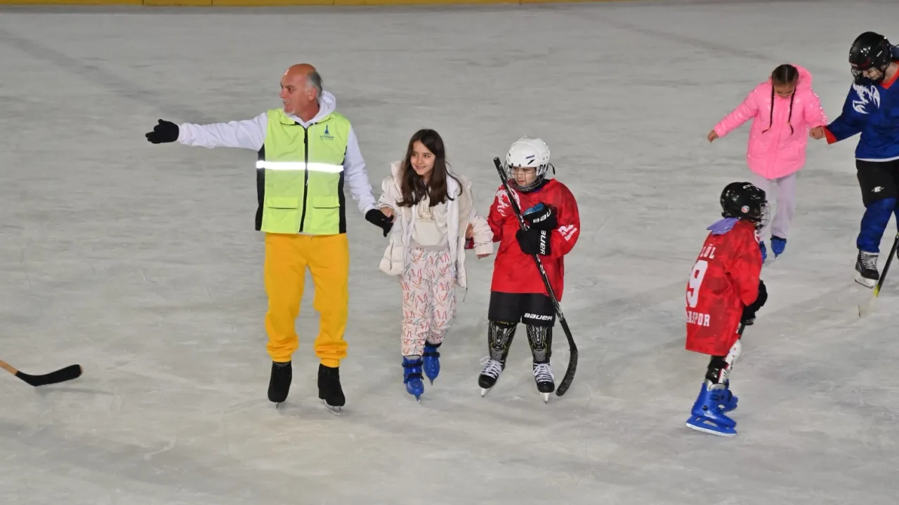 İlk kez buz pistine çıkan 150 çocuğa, uzman antrenörler eşliğinde temel ve teorik eğitim verildi.