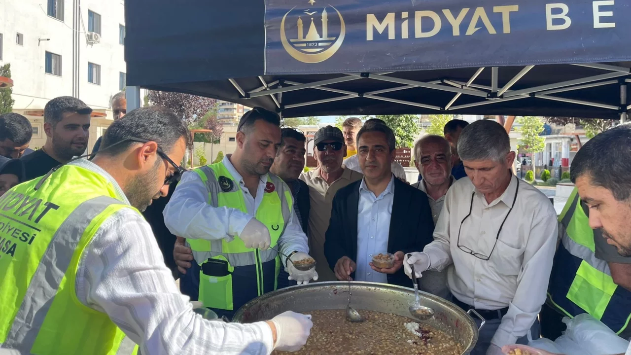 Belediye Başkan Yardımcıları Masum Cengiz ve Rıdvan Akyol’un yanı sıra AK Parti Midyat İlçe Kadın Kolları Başkanı Muazzez Acar ile Gençlik Kolları Başkanı Mert Cesur Tural da etkinliğe katılarak vatandaşlara aşure ikram etti, Muharrem ayının anlam ve önemine ilişkin değerlendirmelerde bulundu.