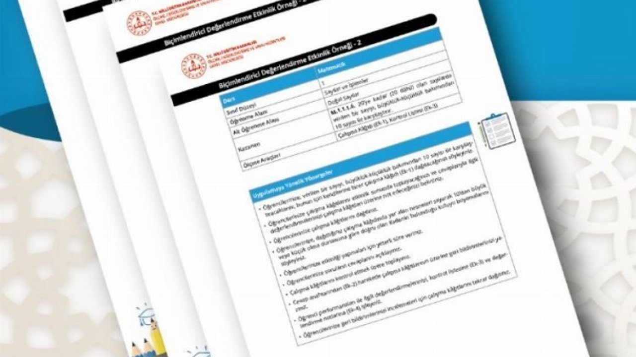 Ölçme ve Değerlendirme Yönetmeliğince belirlenen yaklaşım gereği öğrencilerin akademik ve sosyal gelişiminin takibi ve süreç odaklı değerlendirilmesine yönelik etkinlik örnekleri ve ölçme araçları hazırlanarak paylaşılmaya devam ediyor.ANKARA (İGFA) - Milli Eğitim Bakanlığı, Ölçme, Değerlendirme ve Sınav Hizmetleri Genel Müdürlüğü tarafından daha önce yayımlanan ilkokul matematik, hayat bilgisi, fen bilimleri ve sosyal bilgiler etkinliklerine ek olarak Türkçe dersi kapsamında da süreç odaklı ve oyun temelli yeni etkinlikler, öğretmenlerin kullanımına sunuldu.