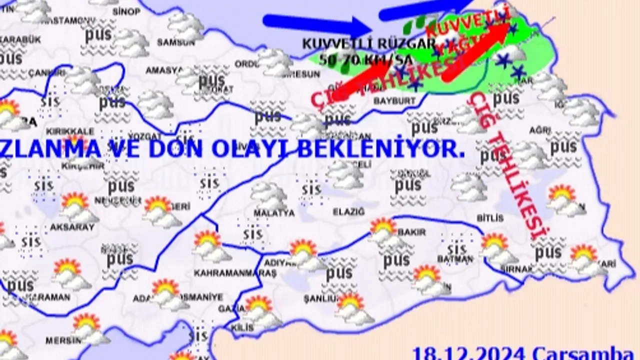 ÇIĞ TEHLİKESİ UYARISI: Meteoroloji Genel Müdürlüğü’nden yapılan son değerlendirmelere göre, Türkiye genelinde kuzey, iç ve doğu bölgelerde parçalı ve çok bulutlu hava etkili olacak. Özellikle Doğu Karadeniz kıyıları, Bartın, Sinop, Ordu ve Ardahan çevrelerinde kuvvetli yağmur ve sağanak bekleniyor. Rize, Artvin ve Ardahan'ın iç kesimlerinde ise yoğun kar yağışı etkili olacak.