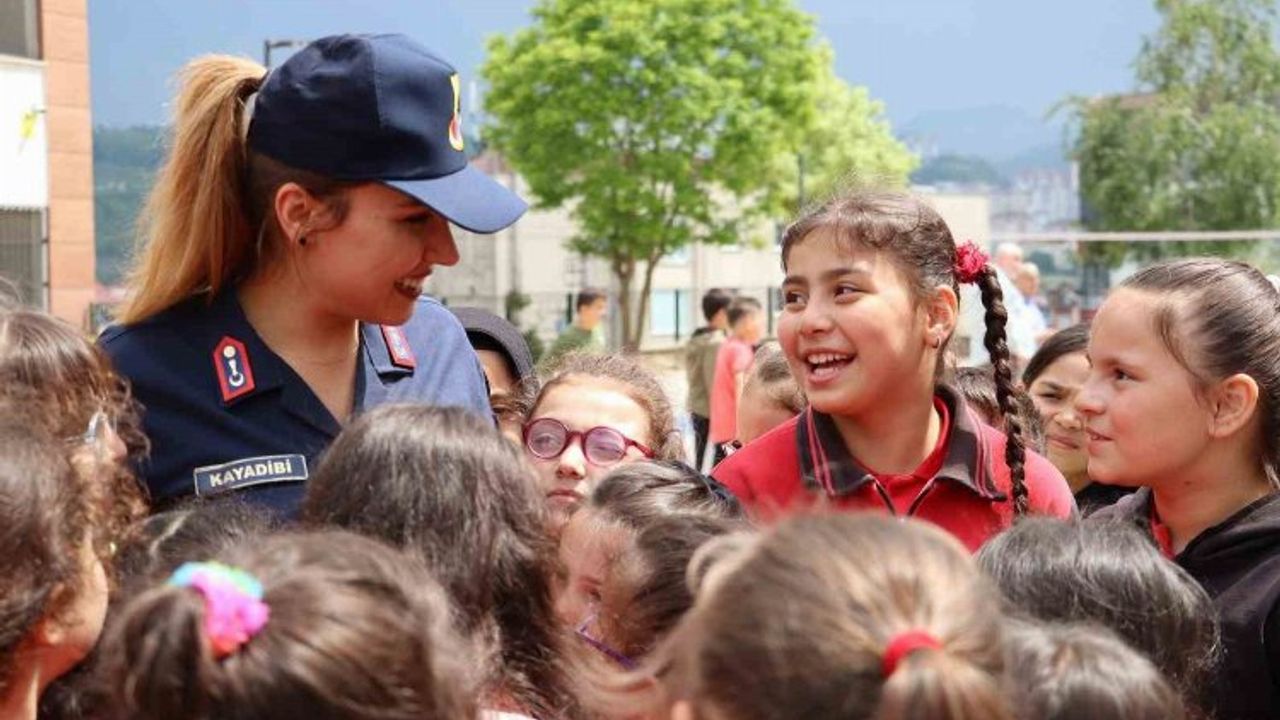 Ordu’da jandarma ekipleri, anaokulu ve ilkokul öğrencileriyle bir araya gelerek etkinlik düzenledi. Etkinlikte öğrenciler, jandarma personelleri için yazdıkları mektupları teslim etti.ORDU (İGFA) - Jandarma Genel Komutanlığı’nın 185’inci kuruluş yıldönümü etkinlikleri kapsamında, Ordu İl Jandarma Komutanlığı ekipleri, Altınordu ilçesindeki bir ilk ve anaokulunda öğrenim gören öğrenciler ile bir araya geldi. Öğrencilere jandarma ekiplerinin yürüttüğü faaliyetler hakkında bilgilendirme yapılırken çeşitli etkinlikler ile eğlenceli vakit geçirildi. Motosikletlere de binen öğrenciler, köpek unsurları tarafından gösterilen şovu dikkatlice izledi.