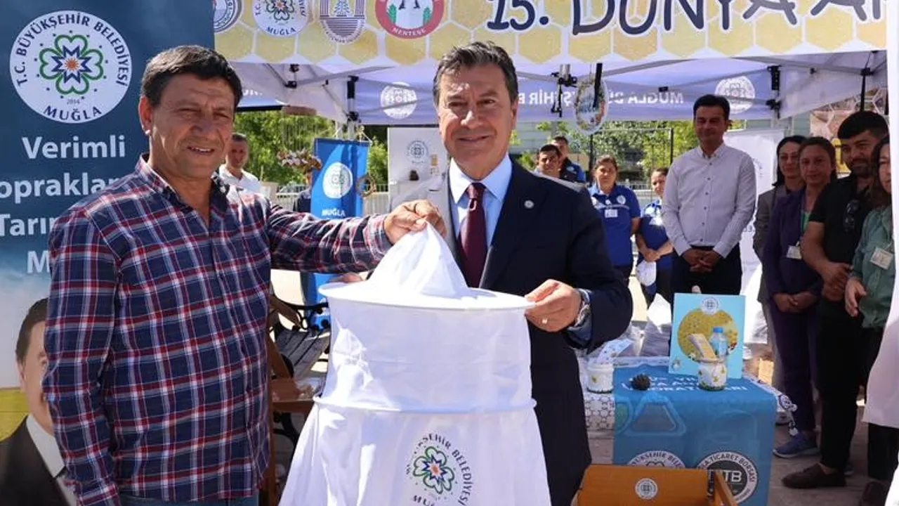 Muğla Büyükşehir Belediyesi ve birçok kurumun ortak katılımıyla, 20 Mayıs Dünya Arıcılık Günü, Menteşe Kent Meydanı'nda düzenlenen etkinliklerle kutlandı.MUĞLA (İGFA) - Muğla Büyükşehir Belediyesi, arıcılığa yönelik kooperatiflerle iş birliği içerisinde makine, ekipman ve eğitim desteğini sürdürürken, polen tuzaklı tabanlar, lavanta fideleri ile oluşturulan bal ormanları ve fondan arı yemi üretimi gibi projelerle sektöre katkı sağlamaya devam ediyor. Büyükşehir, gelen talepler doğrultusunda ana arı ve arı sütü üretimi konularında eğitimler düzenlemekte; katılımcılara ise gerekli ekipman ve sarf malzeme desteği sağlamaktadır.