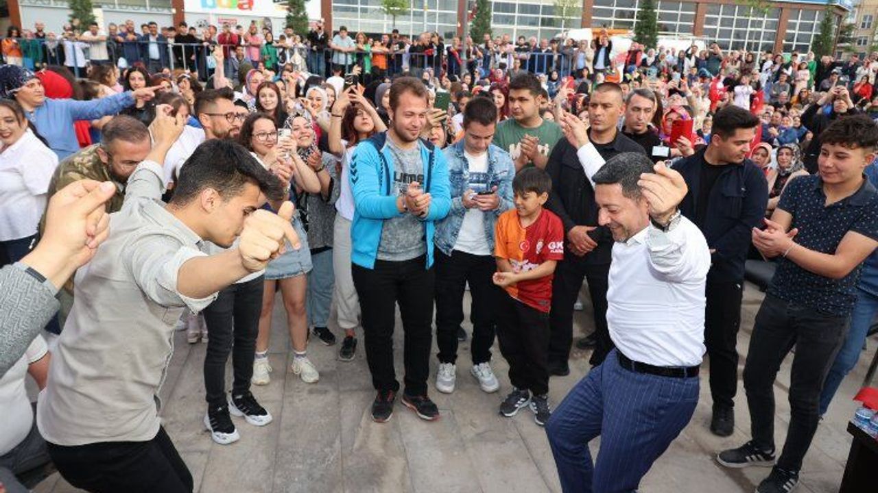Belediye Başkanı Arı, Taş’ın seslendirdiği oyun havalarına gençlerle birlikte eşlik ederek sahnede oynadı.