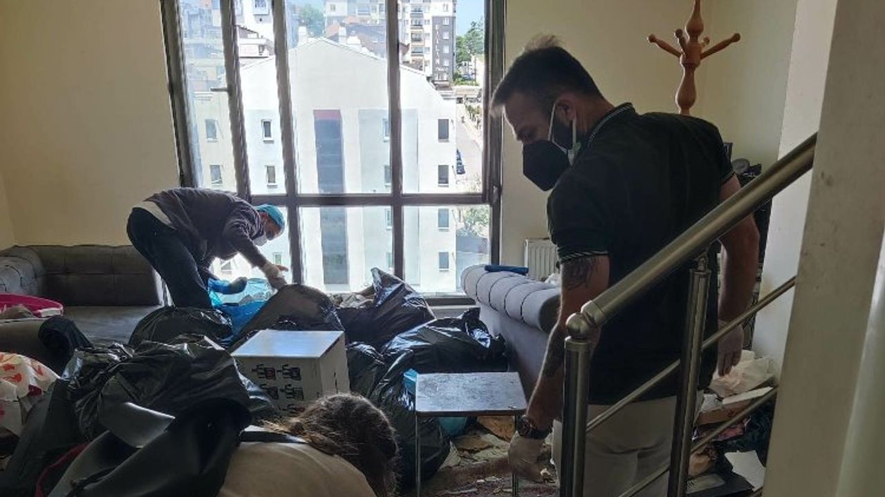 Ekipler, savcılık izni alındıktan sonra girdikleri dubleks evde, çöp yığınlarıyla karşılaştı. Gördükleri manzara karşısında şaşkınlığa uğrayan ekipler, evi temizlemeye başladı.
