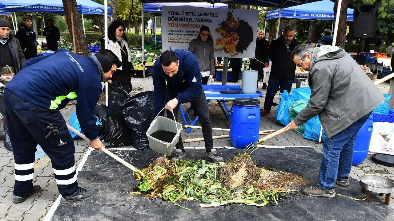 İzmir Büyükşehir Belediyesi İklim Değişikliği ve Sıfır Atık Dairesi Başkanlığı ile Buğday Derneği tarafından Kültürpark’taki üretici pazarında “Yerel Üreticilerimizle Döngüsel Tarıma Yön Veriyoruz” adlı etkinlik düzenledi. Kültürpark’taki üreticilere ve yurttaşlara alanda kolay yöntemlerle kompost üretimi uygulamalı olarak anlatıldı.
