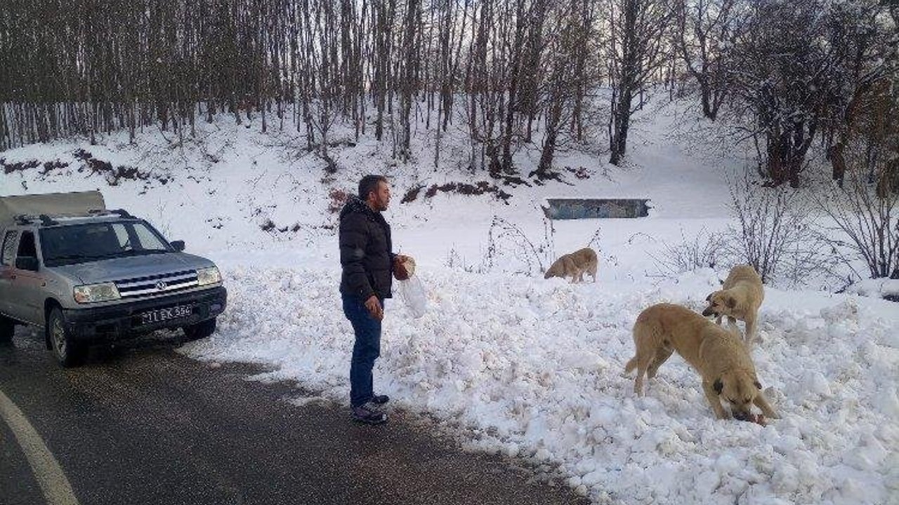 Bilecik'in Pazaryeri ilçesinde hava sıcaklığının gece -10 dereceye kadar düşmesi sonrasında yerel belediye başıboş sokak hayvanları için çalışma başlattı.Pazaryeri Gündem / BİLECİK (İGFA) - Pazaryeri’ni Bursa'ya bağlayan karayolunun Ahı Dağı kısmında sayıları gittikçe çoğalan başıboş köpekler belediye ekiplerince her gün periyodik olarak besleniyor.
