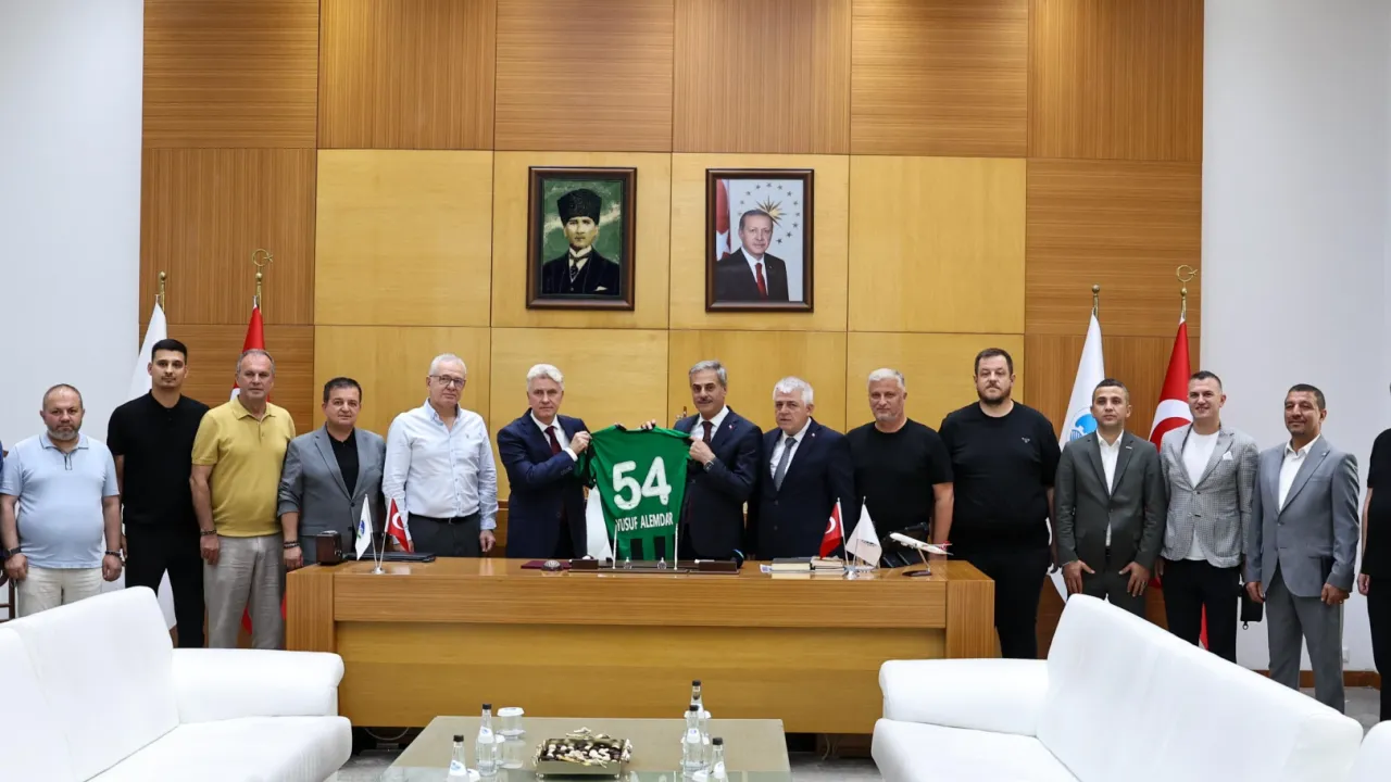 Sakaryaspor’un yeni yönetimi Büyükşehir Belediye Başkanı Yusuf Alemdar’ı ziyaret etti.SAKARYA (İGFA) -Sakarya Büyükşehir Belediye Başkanı Yusuf Alemdar, Sakaryaspor Olağanüstü Genel Kurulunun ardından Kulüp Başkanı olan Muhammet Kıratlı ve yönetimini konuk etti.
