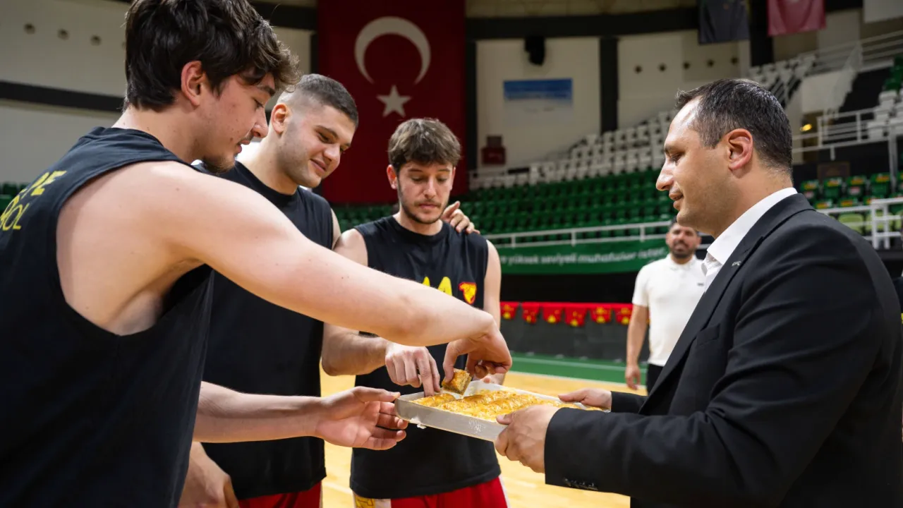 İzmir'de Bornova Belediye Başkanı Ömer Eşki, Türkiye Basketbol İkinci Ligi Final Grubu’nda mücadele eden ve bir üst lige yükselme yolunda büyük avantaj yakalayan Göztepe Erkek Basketbol Takımı’nın antrenmanını ziyaret etti.İZMİR (İGFA) - Göztepe, 15 Mayıs Çarşamba saat 20.00’de Bornova Belediyesi Atatürk Spor Kompleksi’nde oynayacağı kritik Ada Yem Uşak Basketbol maçı öncesi Bornova Belediye Başkanı Ömer Eşki’nin ziyareti ile moral buldu. Başkan Eşki, sarı-kırmızılı oyunculara baklava ikram ederek başarılar diledi.