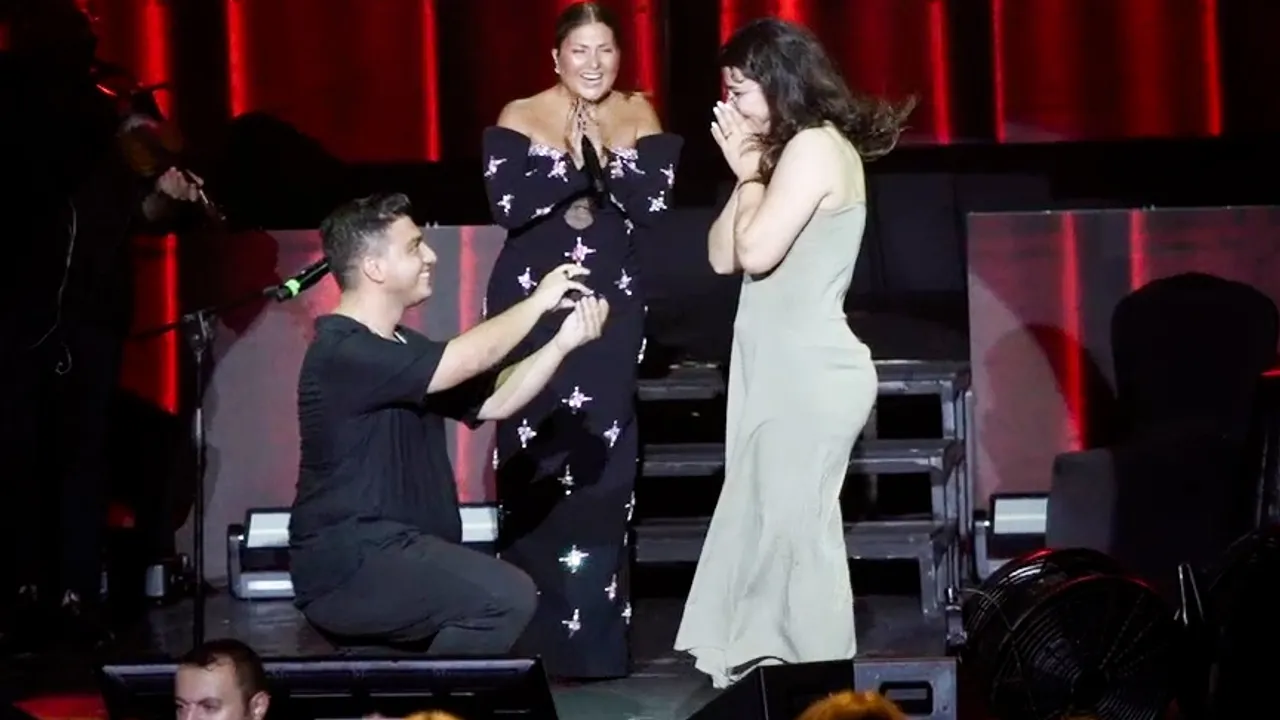 Sibel Can'ın Antalya konserinde bağlama ustası Yusuf Ali, sevgilisi Figen'e evlenme teklifi etti. Sahnede duygusal anlar yaşandı ve Figen'in "Evet" yanıtıyla yoğun alkışlar yükseldi. Can, genç çifte mutluluk dileklerinde bulundu.İSTANBUL (İGFA) - Türk müziğinin güçlü sesi Sibel Can, Antalya Sueno’da verdiği konserde unutulmaz bir sürprize tanıklık etti. Sanatçının orkestrasındaki bağlama ustası Yusuf Ali, sahneden sevgilisi Figen’e evlenme teklif etti. 17 yaşında Sibel Can’ın orkestrasına dahil olan ve beş yıldır çalışan Yusuf Ali, genç yaşına rağman Türkiye’nin en önemli bağlama sanatçıları arasında yer alıyor.