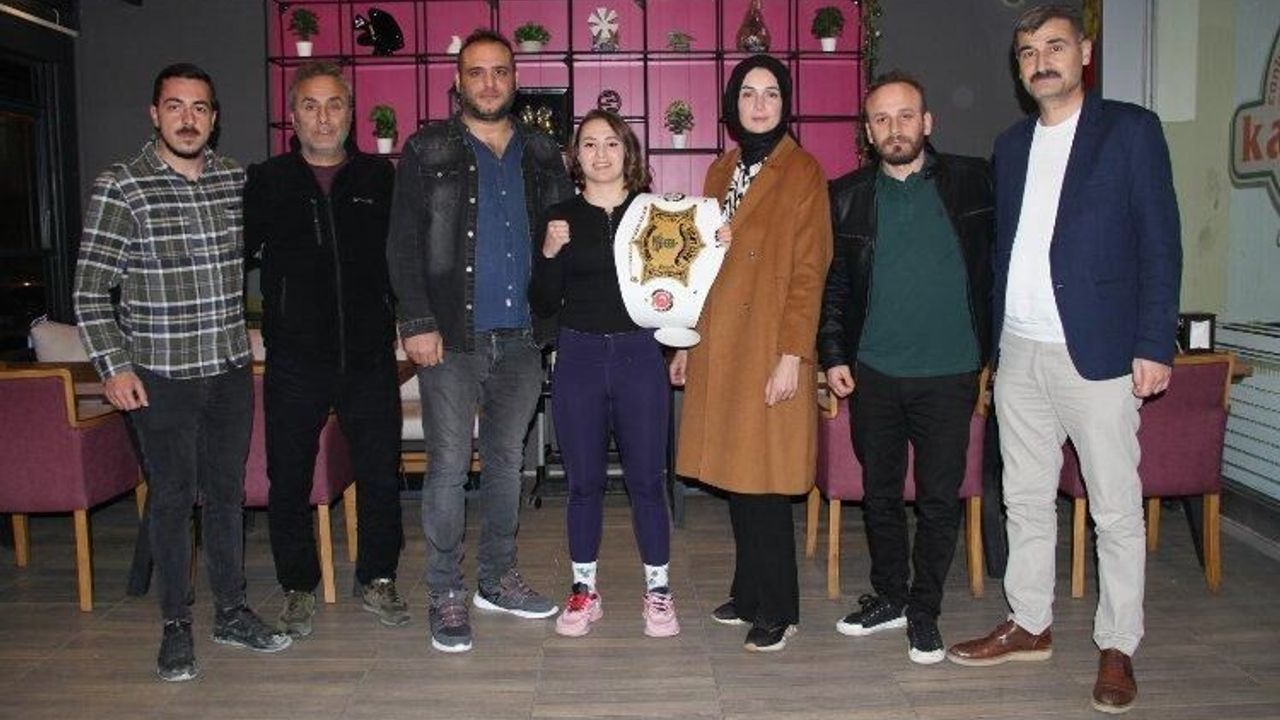 İsmail Altay Fight Arena Uluslararası Kick Boks Kemer Şampiyonasında 56 kg’da şampiyon olan Tuğçe Fedakartürk, sponsoru Soyturtürk İnşaat Yönetim Kurulu Başkanı Murat Soytürk tarafından akşam yemeğinde ağırlandı.Evren KIZILTAŞ / KOCAELİ (İGFA) - Kalıntaş Restoran’da gerçekleşen buluşmada, Tuğçe Fedakartürk’ü antrenörü ve Gebze Fetih 1453 Spor Kulübü Başkanı Yılmaz Uyanık, Darıca Trabzonlular Dernek Başkanı Umut Sağlam, İş insanı Ferdi Sevim ve yakın arkadaşları yalnız bırakmadı.
