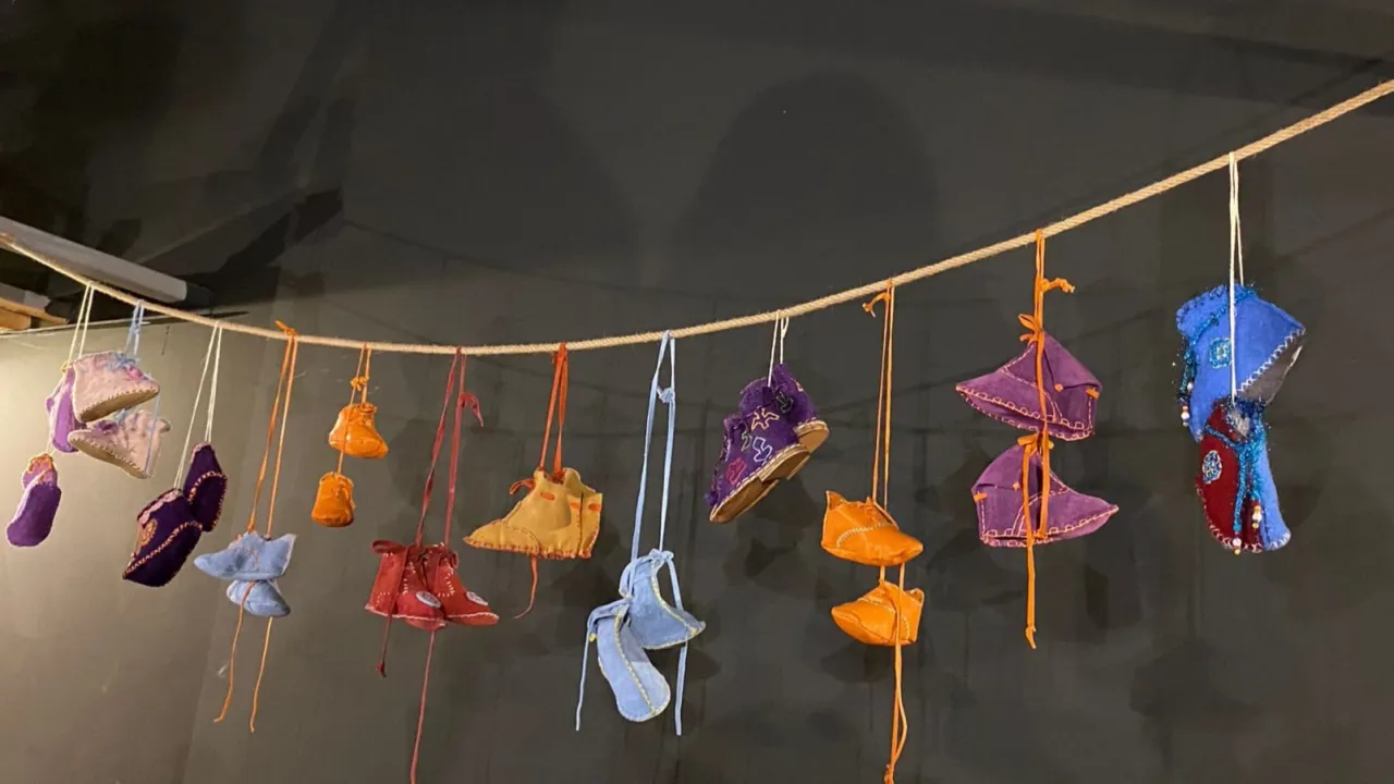 Sergide, Hun İmparatorluğu dönemine dayanan ayakkabı formları, Asya’nın Pazırık bölgesinden Anadolu’ya taşınan motiflerle buluşuyor. Kürk, keçe ve deri gibi doğal malzemelerle yapılan ayakkabılar, Selçuklu ve Osmanlı dönemlerini yansıtan detaylarla bezenmiş. Sergilenen ayakkabılar, geleneksel tekniklerle tamamen el yapımı olarak üretildi. Saya ve taban bölümlerinde lotus, su kuşları, çift başlı horoz gibi motifler dikkat çekerken, Osmanlı çinilerinden ve kilim desenlerinden ilham alınmış detaylar ayakkabılara estetik bir derinlik katıyor.