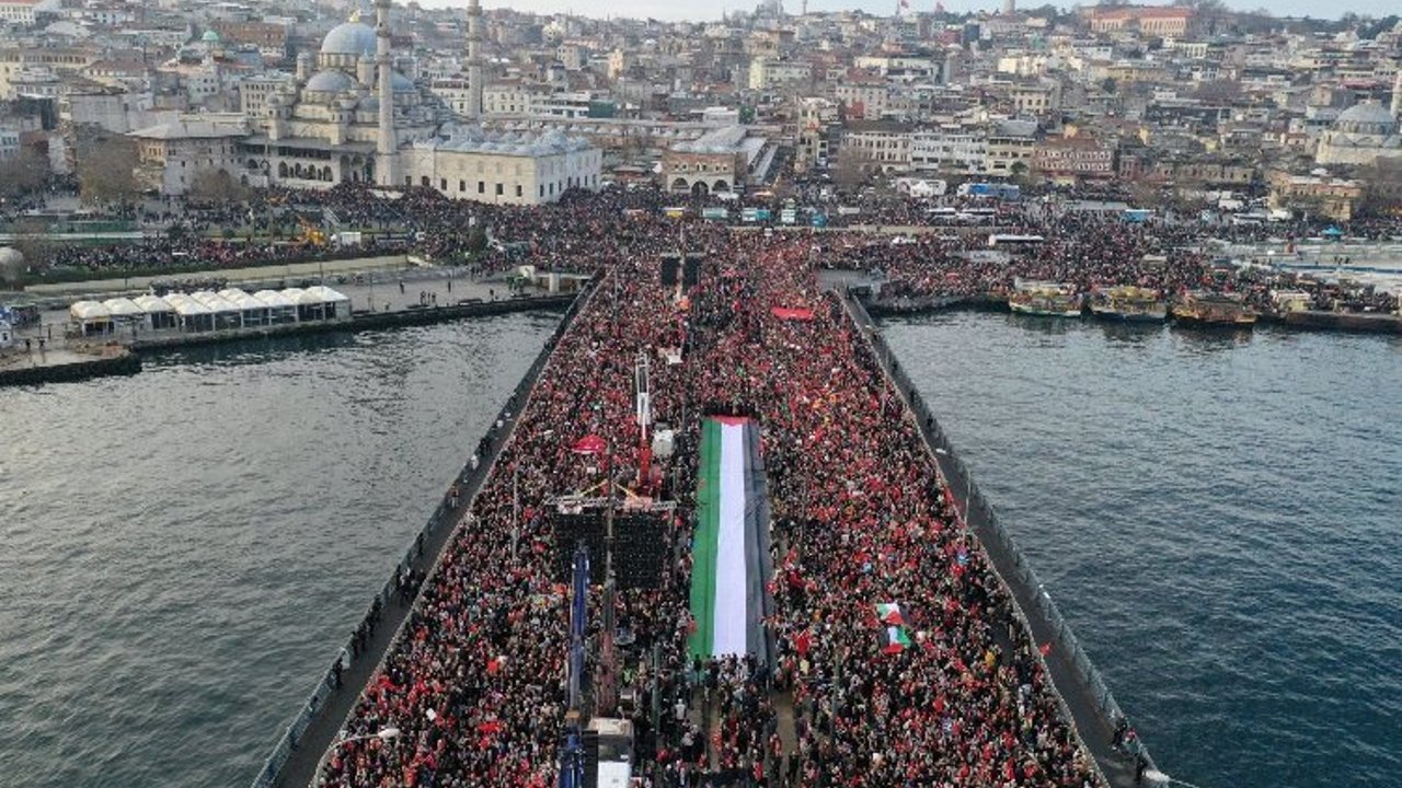 Ayasofya Cami’de kılınan sabah namazının ardından Galata Köprüsü’nden Galata Meydanı’na gerçekleştirilen yürüyüşe katılan Başkan Yüce, yüz binlerle birlikte tarihi mitingeeşlik etti. Yılın ilk gününde gerçekleştirilen buluşma, çalınan ezgiler ve Kuran-ı Kerim tilaveti ile devam etti.