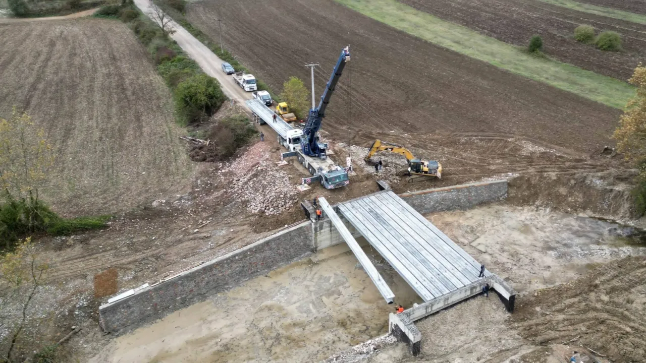 Büyükşehir, İzmit Bulduk Mahallesi ile Kandıra Tatarahmet Mahallesini birbirine bağlayan köprüde 13 adet kirişin montajı tamamladıKOCAELİ (İGFA) - Kocaeli Büyükşehir Belediyesi, İzmit Bulduk Mahallesi ile Kandıra Tatarahmet Mahallesini birbirine bağlayan grup yolu üzerindeki Tatarahmet Köyü Köprüsünde 13 adet 75 santim yüksekliğinde öngerilmeli prefabrik kiriş montajı yaptı. Büyükşehir, yoğun yağışlar nedeniyle hasar gören ve tehlike oluşturan eski Tatarahmet köprüsü yıkmış, yerine yeni köprü için çalışmalara başlamıştı. Büyükşehir ekiplerinin yoğun çalışmaları sonucu köprünün prefabrik kiriş montajı tamamlandı. 18x4 metre köprü açıklığı bulunan ve 100 ton donatı çeliği, 620 metreküp C30/37 hazır beton, 900 metreküp moloz taş inşaatı, 800 metrekare harçlı pere imalatları yapılacak yeni köprüde çalışmalar tüm hızıyla sürüyor.