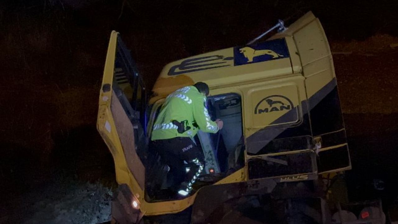 Düzce'de Ankara istikameti Beyköy mevkiinde sürücüsünün kontrolünden çıkan tır, şarampole devrildi. Kazada bir kişi yaralandı.Sefer DEMİR / DÜZCE (İGFA) - Alınan bilgiye göre Mahmut Aladağ idaresindeki 01 ANE 678 plakalı tır, otoyolun Ankara istikameti Beyköy mevkisinde kontrolden çıkarak şarampole devrildi.