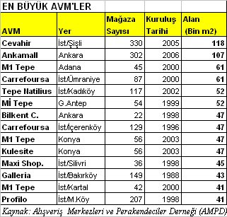 “Geniş” tanımında ise Adana’daki Tepe, İstanbul’da Carrefoursa,Tepe Natilius, G.Antep’teki M1 Tepe, Ankara’da Bilkent Center ilk sıraları alıyor.