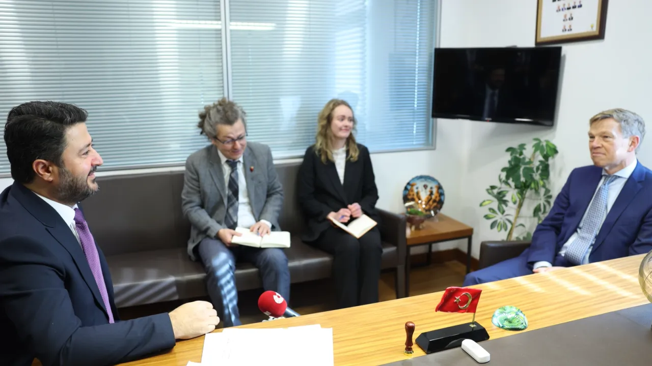 Türkiye-Hollanda Parlamentolar Arası Dostluk Grubu Genel Sekreteri ve AK Parti Nevşehir Milletvekili Emre Çalışkan, Hollanda'nın Ankara Büyükelçisi Joep Wijnands ile bir araya geldi.ANKARA (İGFA) - TBMM'deki görüşmede, Türkiye ve Hollanda arasındaki diplomatik ilişkiler ele alındı.